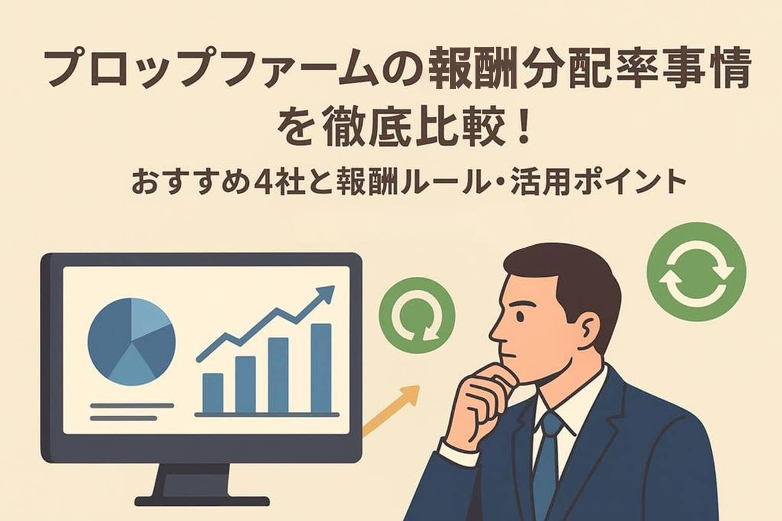 プロップファームの報酬分配率は、合格後の報酬を大きく左右する核心ポイントです。単純に分配率が高いほど得られる金額は増えますが、実際には昇格条件やスケーリングルール、一貫性ルールなど複数の要素が絡むため、各社の制度をしっかり比較することが大切です。